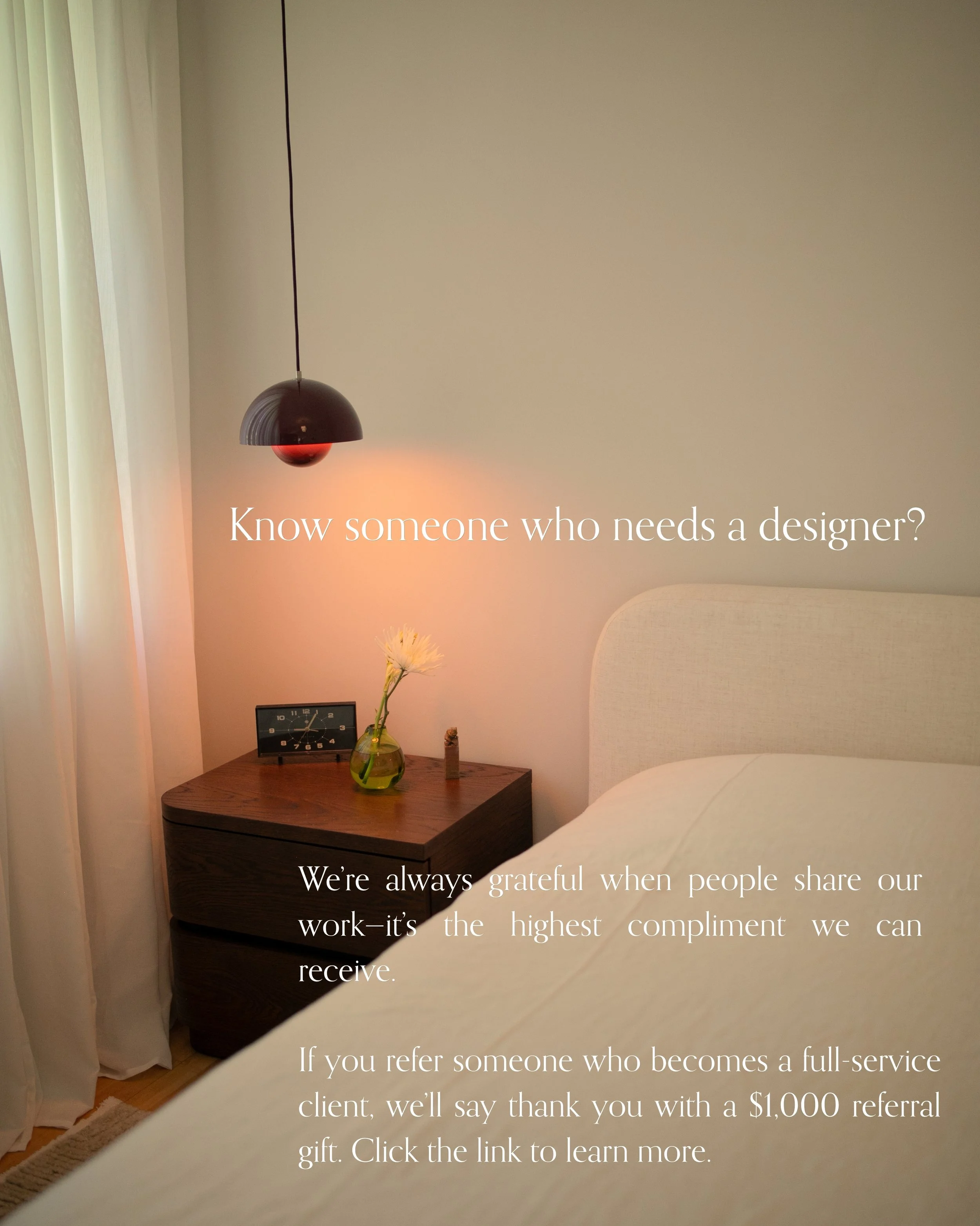 80% of a room should be neutral or grounding, while the remaining 20% can be a pop—something bold, unexpected, or layered with meaning.
