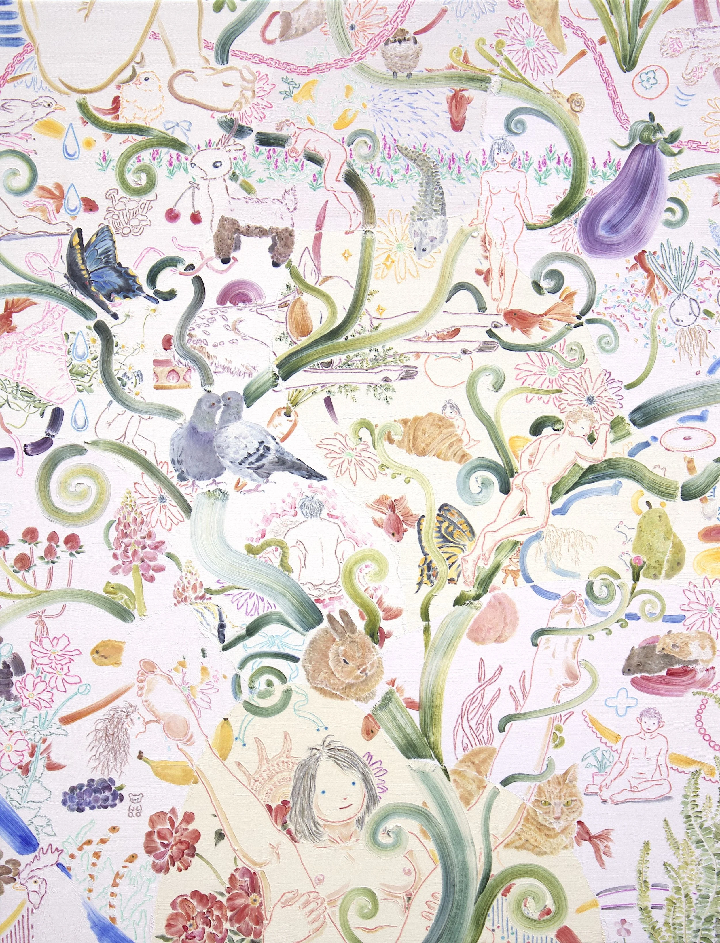 La France Chan, oil and colored pencil on canvas 2024 - 架菜梨案 KANARIA